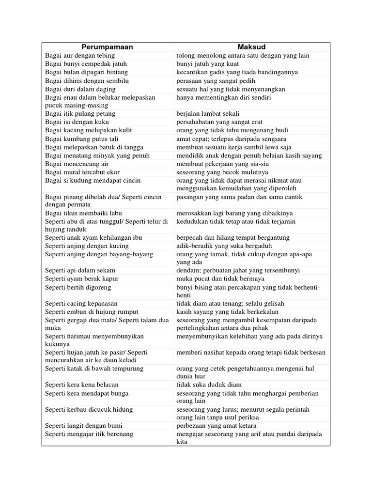 Mandi peluh seperti telur di hujung tanduk langkah kiri putus asa ganding bahu hendak seribu dayatidak hendak seribu dalih ada jalan seperti anjing dengan kucing sedikit-sedikitlama-lama menjadi bukit gelap seperti malam Peribahasa Tahun 5.